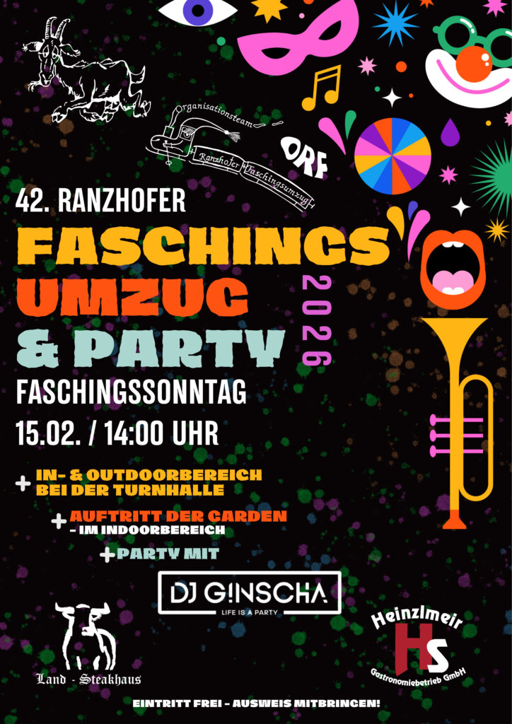 Anschließend findet die Faschingsparty in und an der Turnhalle statt. Wir feiern heuer In- und Outdoor!